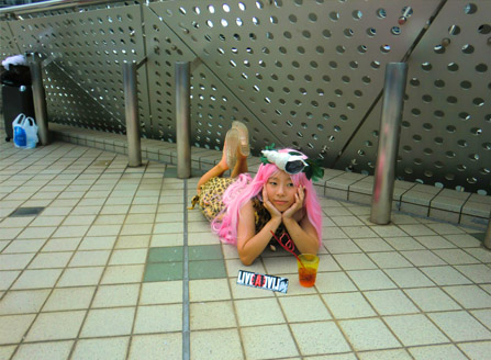お昼を食べて新広場に行ったのですが、(上の写真はお昼後で元気になっている様子ですw)途中でいつもよくまどかネタやLALネタで盛り上がる方と再会して驚きましたw