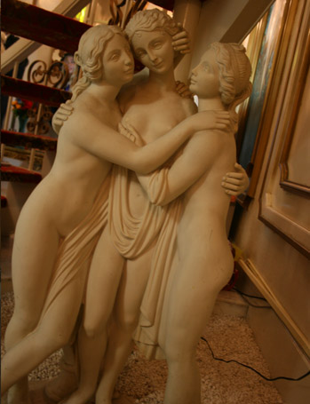このスタジオはロココ調のスタジオなので、シャンデリアがあったり、壁に絵画があったりするのですが、玄関ではこんな女神達が出迎えてくれました。